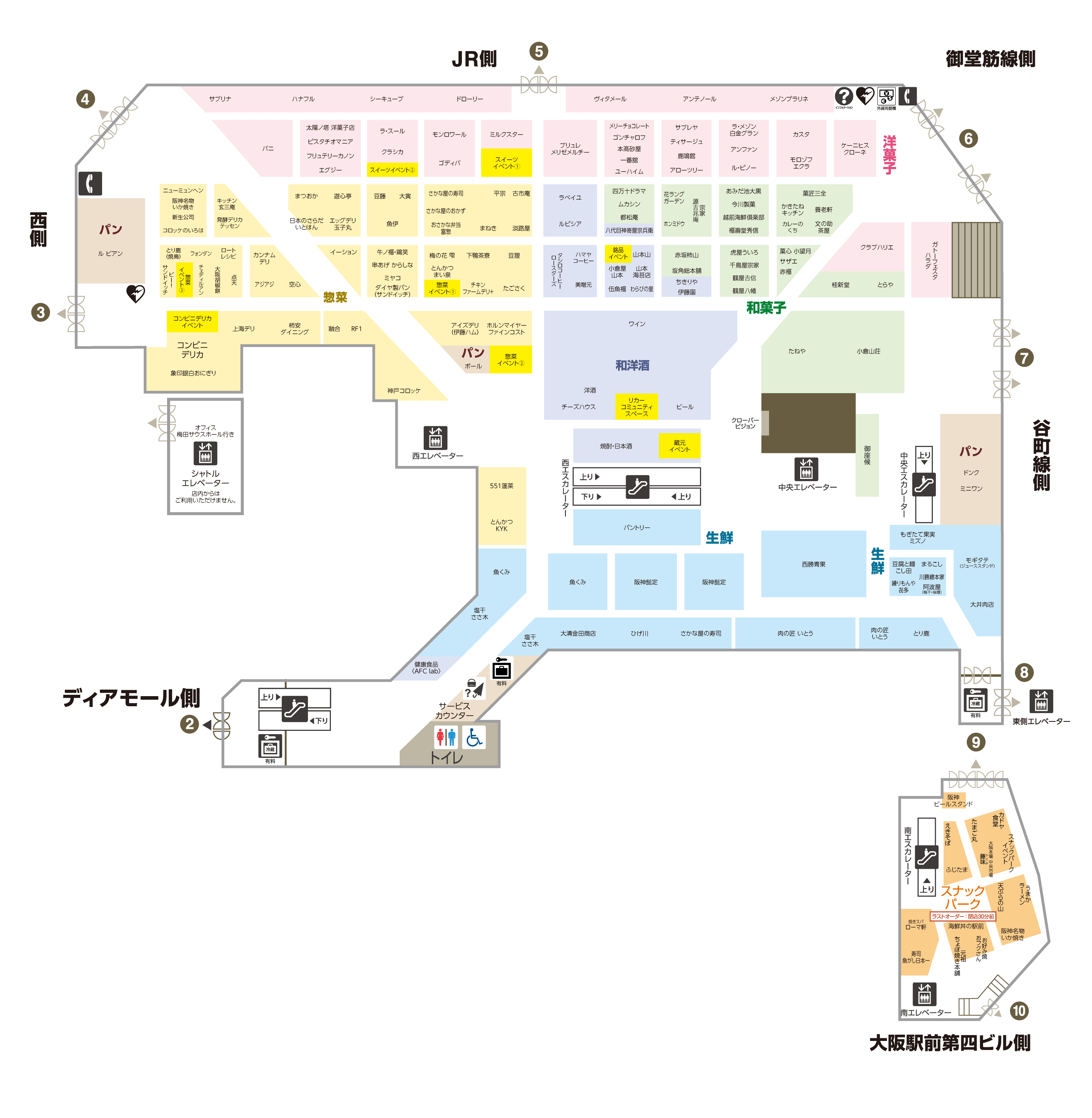 - サービスカウンター(お忘れ物承り、阪神百貨店ポイントカード受付)
