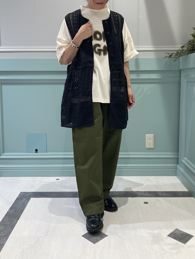 透かし編みが美しいクロシェレースジレは、生地に程よい立体感があり、骨格ナチュラルタイプさんのフレーム感をさりげなくカバーしてくれます。