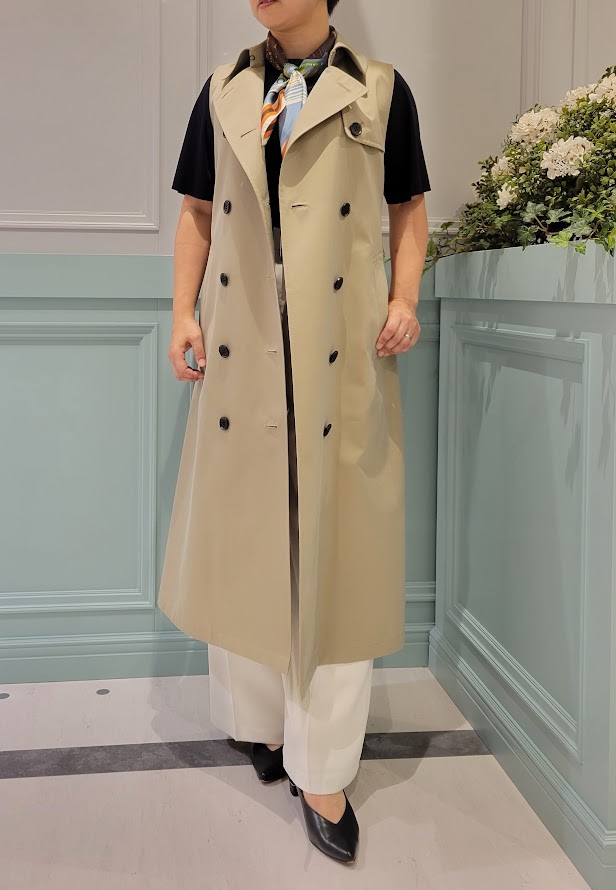 程よいハリ感があり、きちんとした印象を与えてくれるトレンチジレは、骨格ストレートタイプさんにおすすめ!