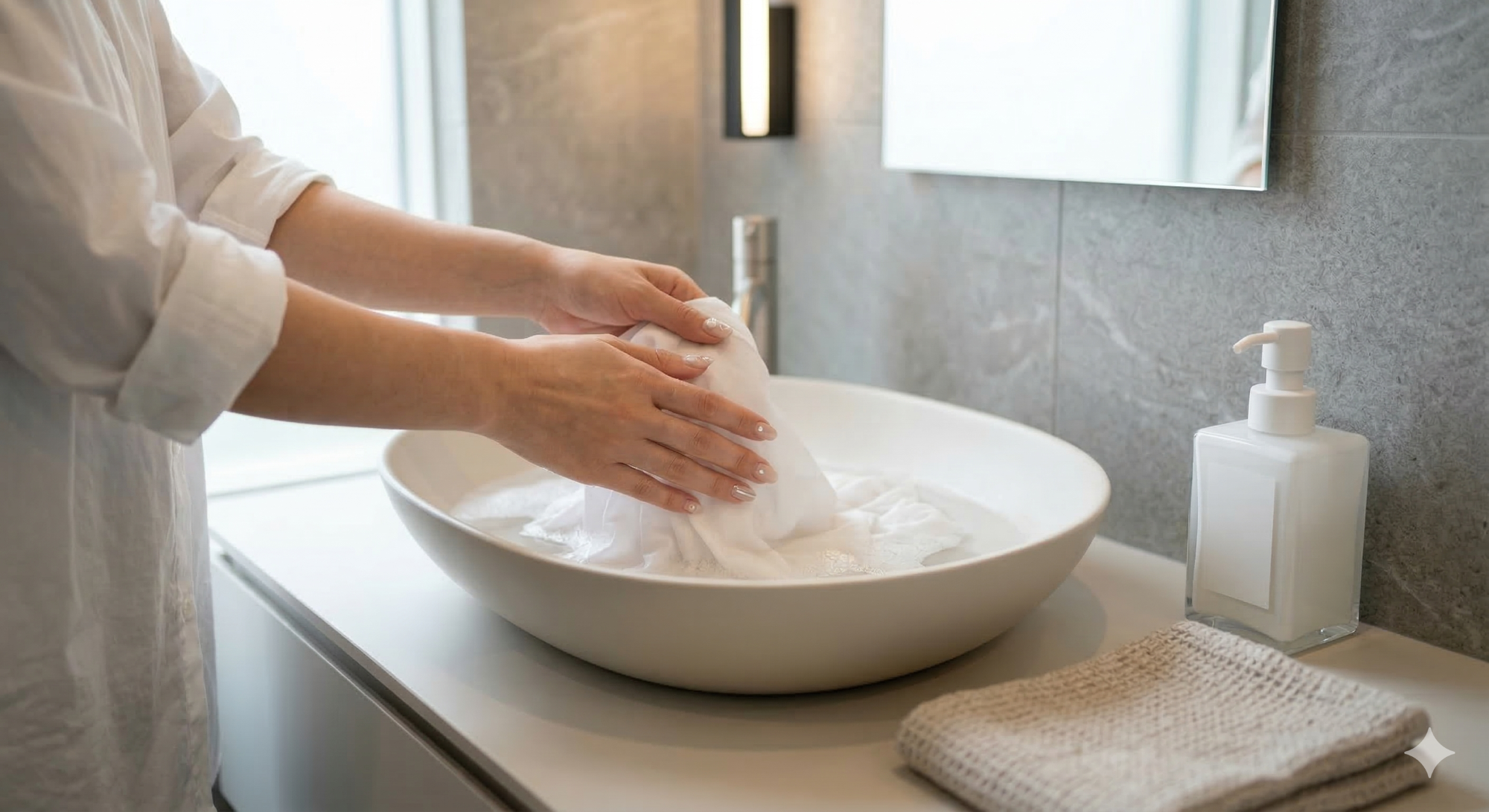 生地の傷みを抑えるため、洗濯の可否、中性洗剤の使用、ネット使用や裏返しなどの具体的な指示を必ず確認しましょう