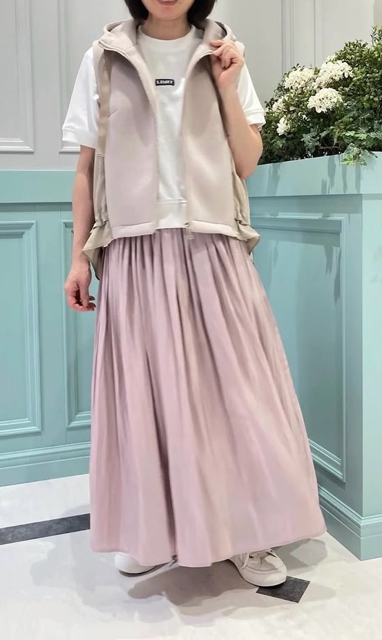 特にこだわっているのが、小柄なスタイルを引き立てるパンツの丈感。足首を少し見せるだけで、全身がふわりと軽くなり、透明感のあるシルエットが生まれます。